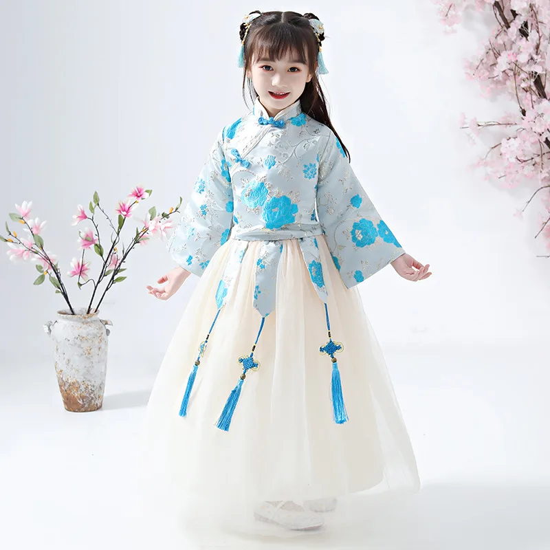 Best Chinese Traditional Children Costume Girls Fairy Tang Suit Chiffon Dress China National Ancient Clo