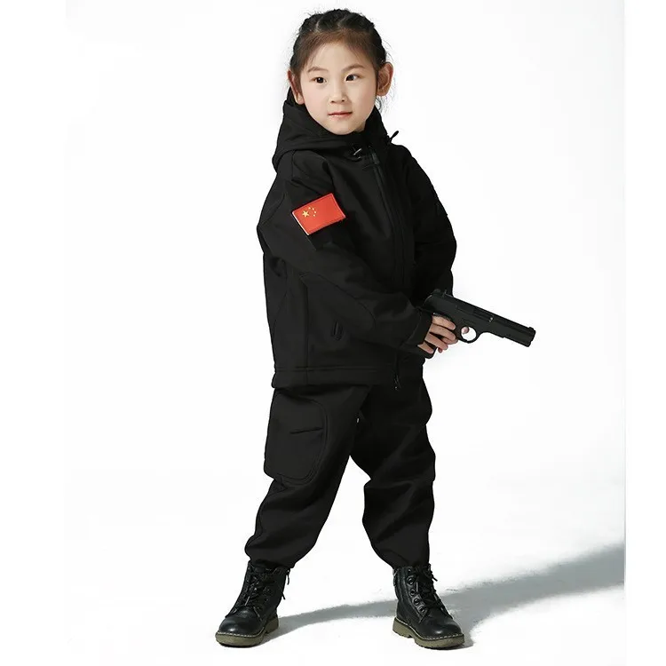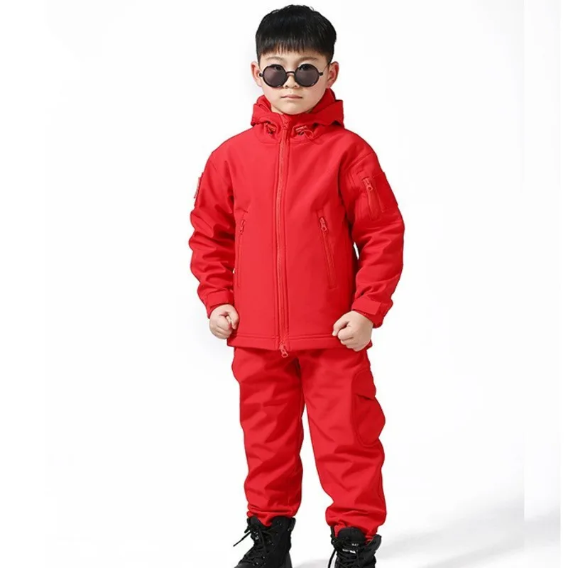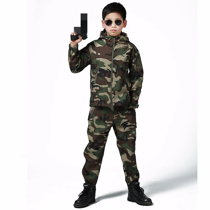 New Kids Fleece Tactical Sets Outdoor CS Shark Skin Soft Shell Jacket Pant Children Camping Hiking
