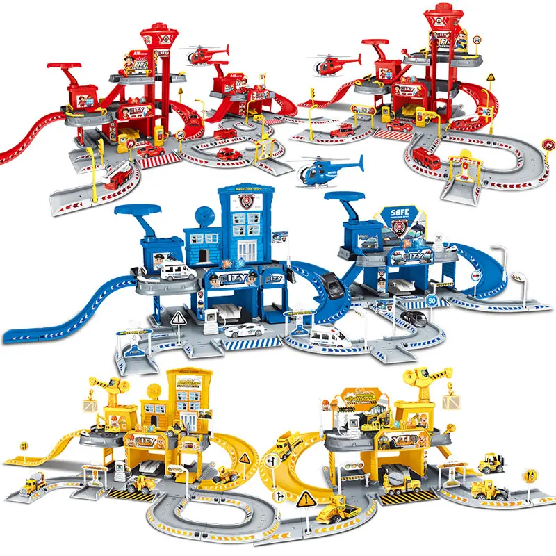 2019 City Police Station Railway Alloy Car Play Engineering Fire Truck Track Car DIY Model Building