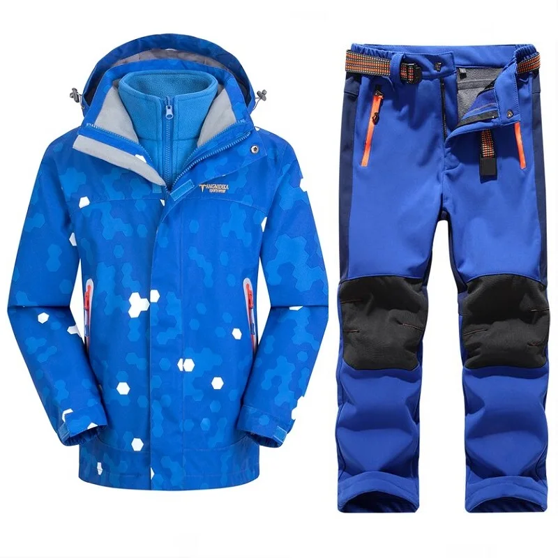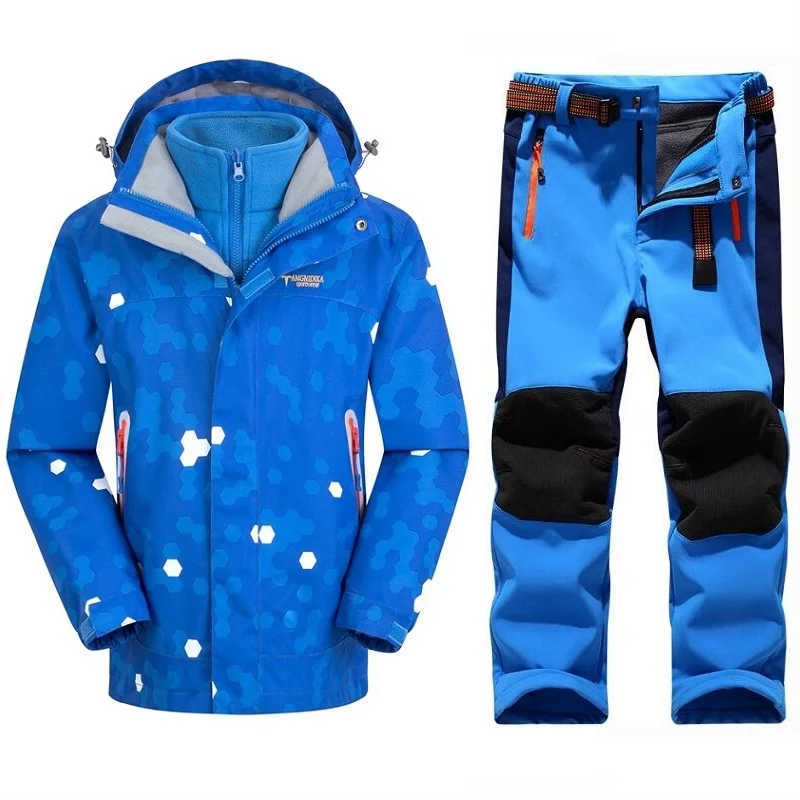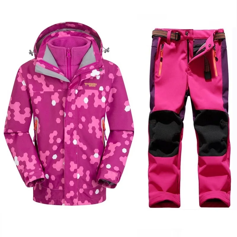 BEST Winter Warm Waterproof Baby Boys Girls Climbing Clothing Sets Child Coat and Pant Children Outerwea