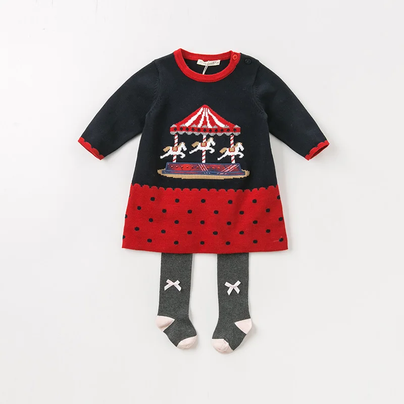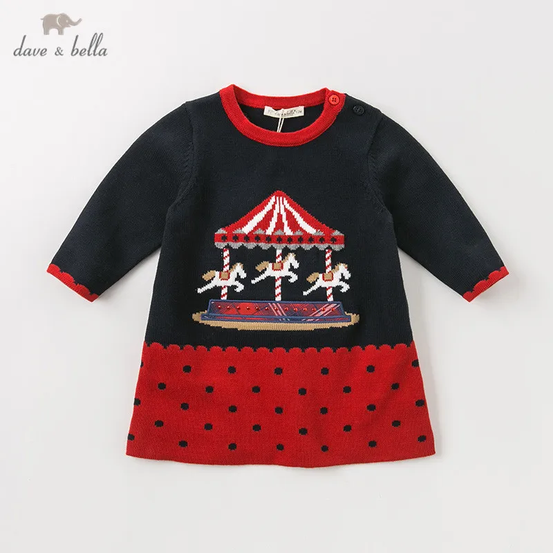 DB11421 dave bella autumn winter baby girl's princess cartoon dots sweater dress children party dre